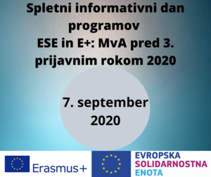 Spletni informativni dan programov ESE in E+: MvA pred 3. prijavnim rokom, 7. september 2020