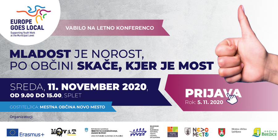 Letošnja konferenca »Mladost je norost, po občini skače, kjer je most«, bo 11. novembra 202, v spletnem okolju Zoom. Gostiteljica bo Mestna občina Novo mesto.