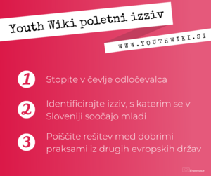 Več o spletni platformi Youth Wiki ter slovenske prevode poglavij najdete na www.youthwiki.si.