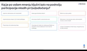 Onemogočanje sodelovanja mladih pri odločanju negativno vpliva tako na samo motivacijo mladih za participacijo v družbi v najširšem smislu, kot tudi na vsebino politik in ukrepov, ki brez uvida mladih, ki ga zagotavlja vključevanje mladih v procese (so)odločanja, praviloma ne naslavljajo ključnih izzivov in težav, s katerimi se soočajo. Vse skupaj pa prispeva k še večji odtujenosti mladih od procesov odločanja je v uvodnem delu pogovora poudarja gostja.