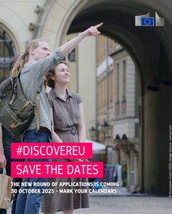 Drugi letošnji prijavni rok DiscoverEU bo odprt med 30. 10. in 13. 11. 2025 (začetek in konec ob 12:00 opoldne po bruseljskem času).