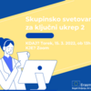 Pridružite se nam na skupinskem svetovanju, ki bo potekalo v torek, 15. 3. 2022, ob 13h, v okolju Zoom. Srečanje, ki ga bosta vodili skrbnici ključnega ukrepa...več »