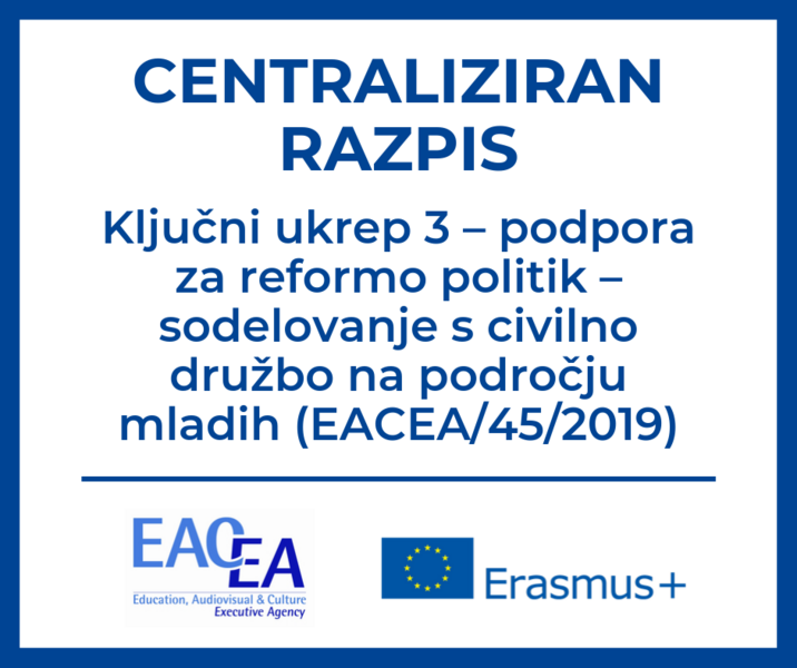 Centraliziran razpis: Sodelovanje s civilno družbo na področju mladih (EACEA/45/2019)