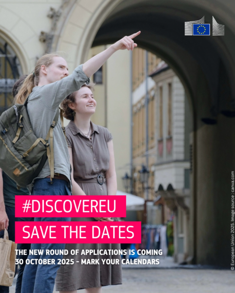 Drugi letošnji prijavni rok DiscoverEU bo odprt med 30. 10. in 13. 11. 2025 (začetek in konec ob 12:00 opoldne po bruseljskem času).