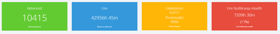 Še posebej razveseljuje podatek, da so kar 7210 ur oziroma 17% vseh aktivnosti fasilitirali mladi, kar kaže na dejstvo, da je mladinsko delo v Sloveniji pomembno orodje za naslavljanje izzivov aktivne participacije in vključevanja mladih.