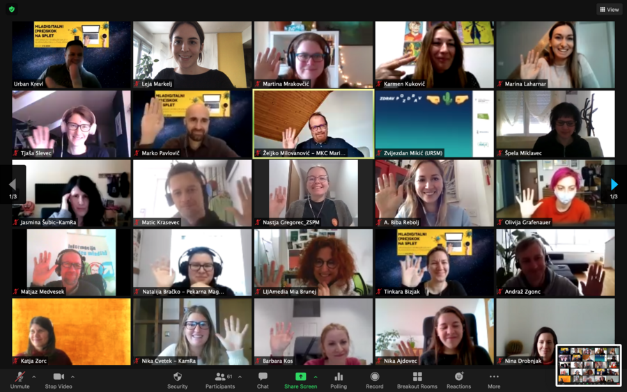 V sodelovanju z Uradom RS za mladino, Mladinskim svetom Slovenije in Mrežo MaMa smo prejšnji teden organizirali že tretje spletno srečanje mladinskega sektorja, katerega se je udeležilo 70 predstavnikov mladinskega sektorja. Namen tokratnega srečanja, ki je nadaljevanje srečanj iz prvega vala epidemije, je bil deliti izkušnje in dobre prakse mladinskega dela v času epidemije. Organizacije mladinskega sektorja so se na nove razmere namreč hitro odzvale in svoje aktivnosti preselile na splet.