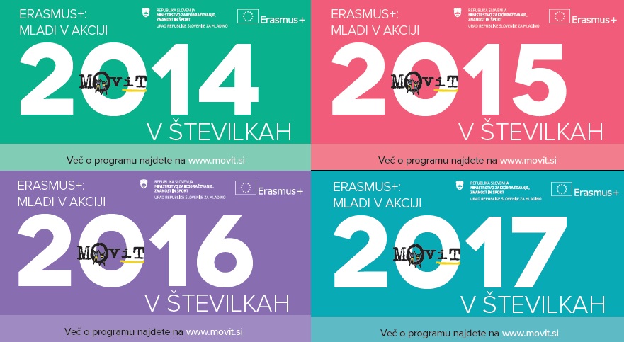 Na spletni strani v rubriki "učinki programa" smo objavili štiri infografike, ki prikazujejo statistike izvajanja programa Erasmus+: Mladi v akciji v letih 2014-2017.