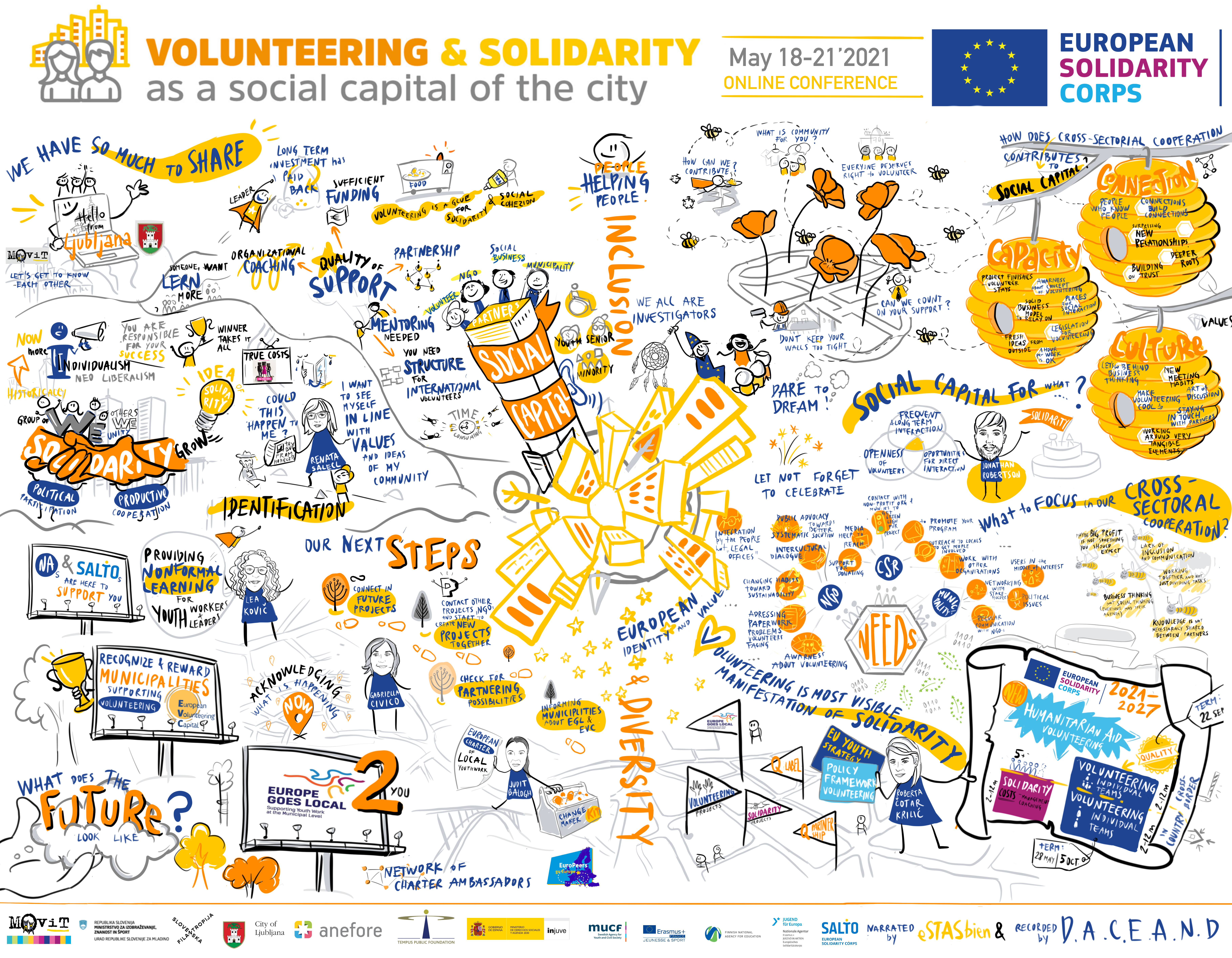 Od 18. do 21. maja 2021 smo na spletu gostili mednarodno konferenco Volunteering and solidarity as a social capital of the city. Na njej se je zbralo 30 udeležencev – predstavnikov nevladnih organizacij, občin in družbeno odgovornih podjetij. Udeleženci so med seboj podelili prakse uspešnega medsektorskega povezovanja, razmišljali o potrebah posameznih sektorjev in naredili načrt za prihodnja sodelovanja.