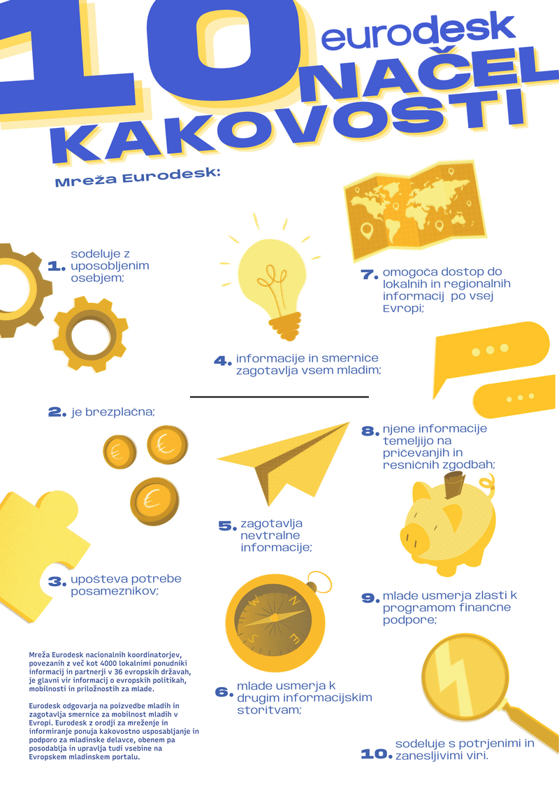 - zagotavljanje evropskih informacij o priložnostih za mobilnost mladih in evropski mladinski politiki